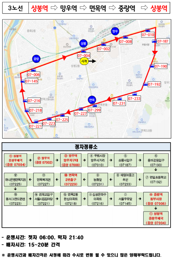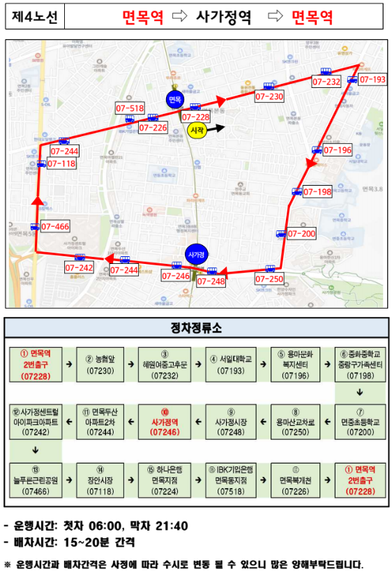 버스파업으로 인한 중랑구 무료셔틀버스 노선