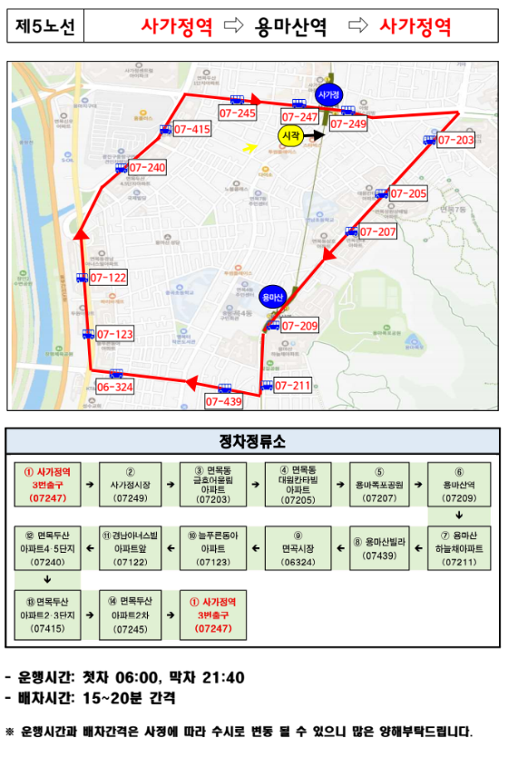 • 교통 상황 및 현장 여건에 따라 운행 시간과 배차 간격은 변경될 수 있습니다.