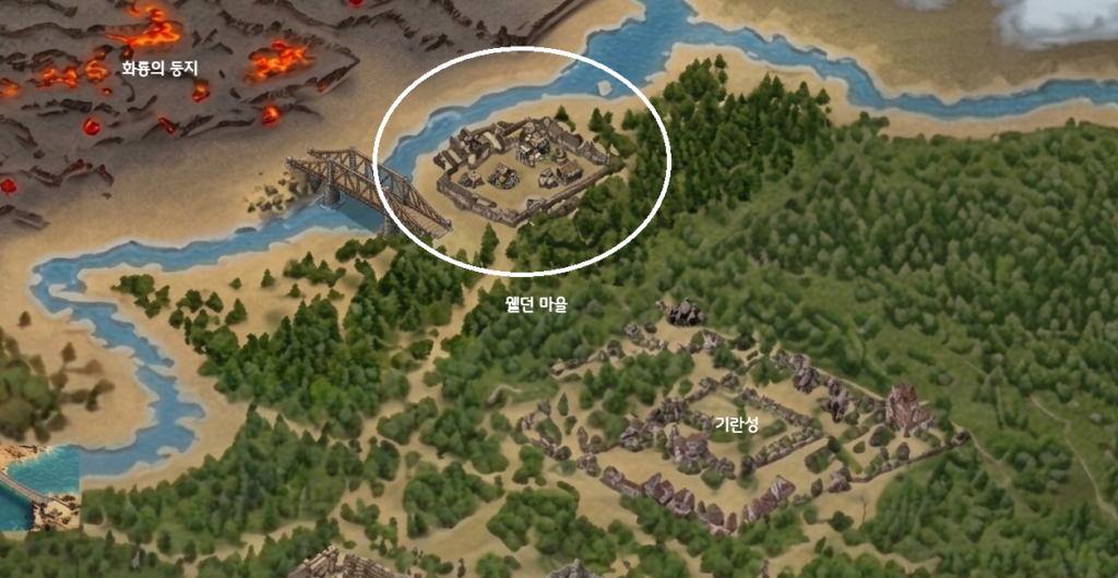 싸울아비장검을 제작하려면 웰던 마을에 있는 NPC 이벨빈을 찾아가야 합니다.